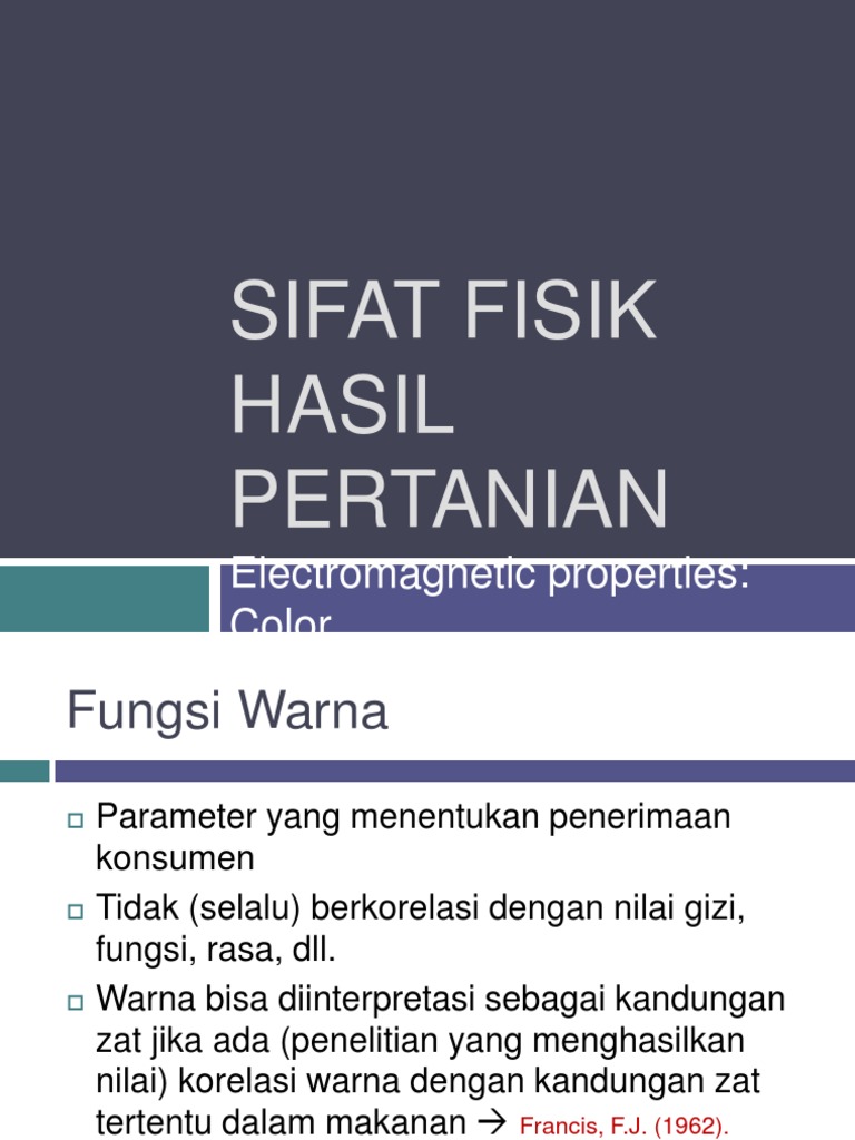 Sifat Fisik Hasil Pertanian | Hue | Color from imgv2-2-f.scribdassets.com Keras lunak perubahan pati menjadi gula 5. Sifat termik bahan hasil pertanian berkaitan dengan banyak hal dan menentukan sifat pengolahannya. Sifat fisik dari produk pertanian terdiri daei berat, vlume, bentuk, warna, tekstur, berat, jenis dan kadar air. Imfrantoni purba o5111003014 teknologi pertanian fakultas pertanian universitas sriwijaya 2012 a. Beberapa sifat komoditas hasil pertanian yang penting diantaranya adalah sifat fisis, sifat kimia dan sifat fisiologis. Pada beberapa komoditas ada yang diberi perlakuan tambahan antara lain : Penyimpanan bahan kimia dan bahan api. 36 37 perencanaan analisis bahan pertanian irmayanti, s.tp irmayanti8@serambimekkah.ac.id jurusan teknologi industri pertanian mata kuliah kimia dan analisis hasil pertanian tujuan.